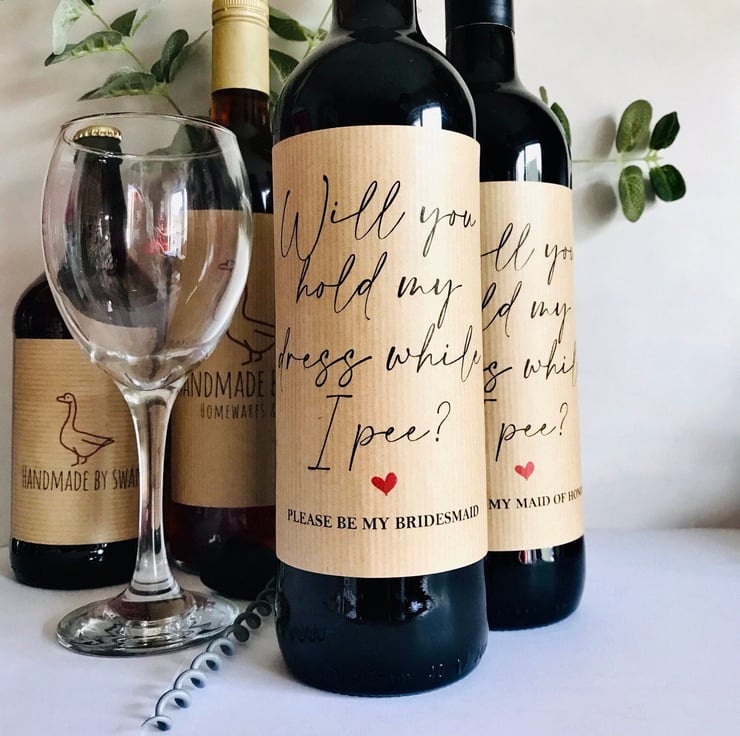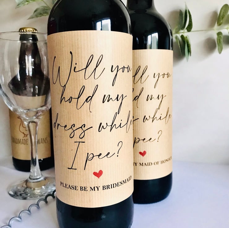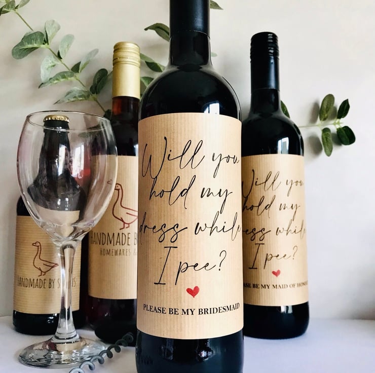 Personalised Will you be my Bridesmaid, Maid of honour Replacement Wine bottle label - just add wine!