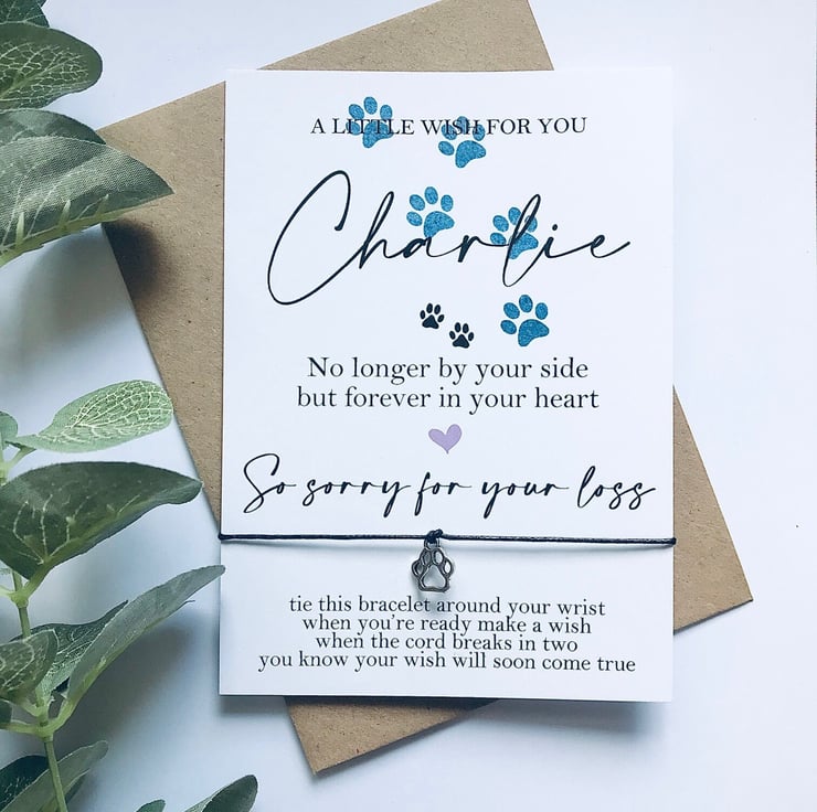 This cute little paw print wish bracelet comes on a 1mm blackwax cord which is attached to a printed A6 size piece of card