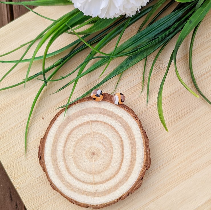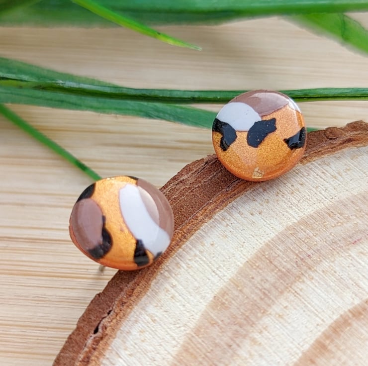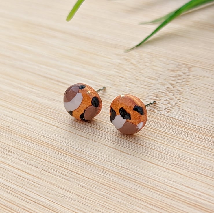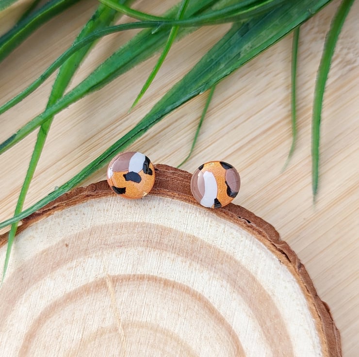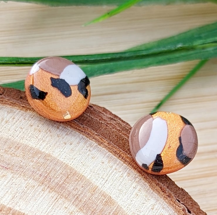 Micro Studs in Metallic copper, white, black and mocha brown colour combination.