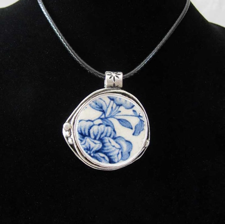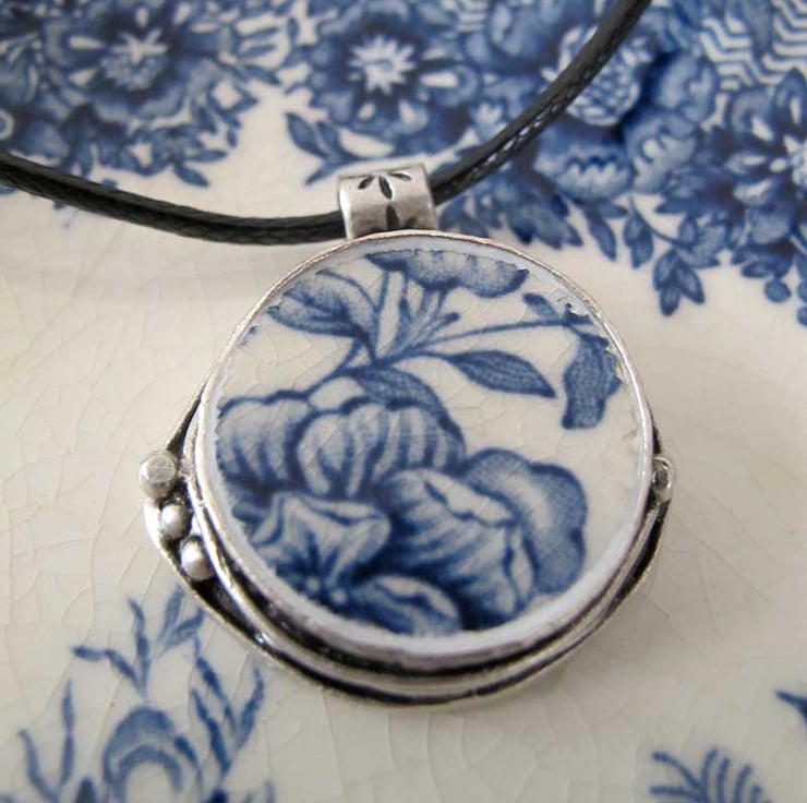 The pendant has been crafted from broken, chipped or crazed china that is no longer fit for purpose - no 'perfect' plates were harmed in the making of my jewellery! This piece is from a Masons Ironstone blue and white plate. Each pendant is a unique statement piece and has its own little characteristics from the vintage china it's been taken from. It makes a very unusual and stylish gift.