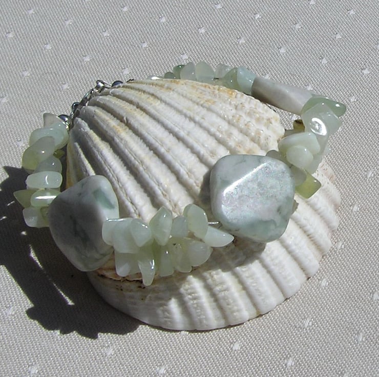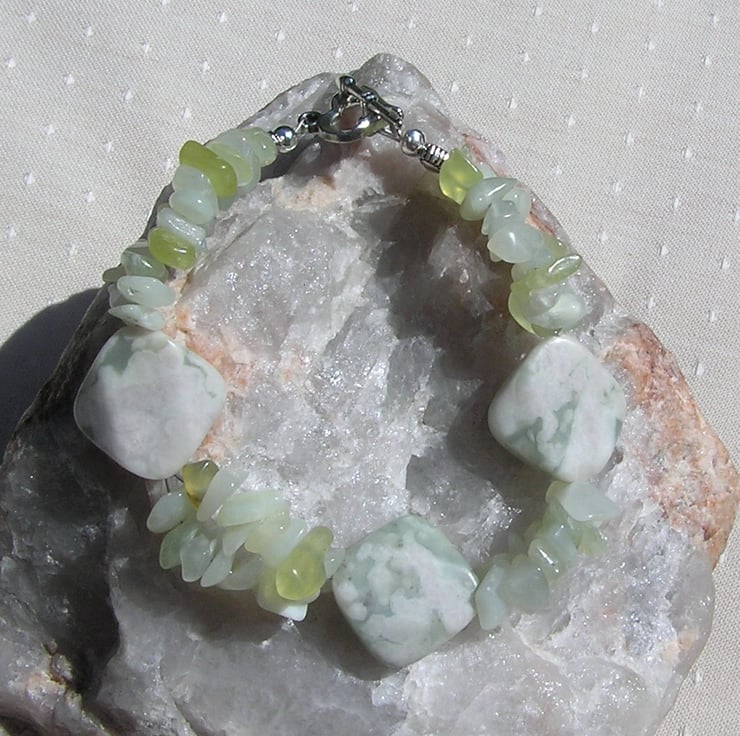 Crystal Gemstone Bracelet, Peace Jade & Green Jade "Harmony" - SALE PRICE
