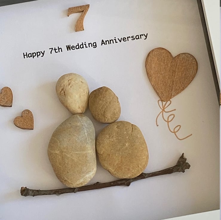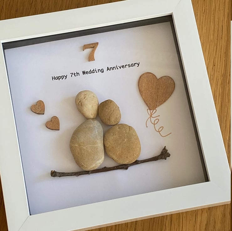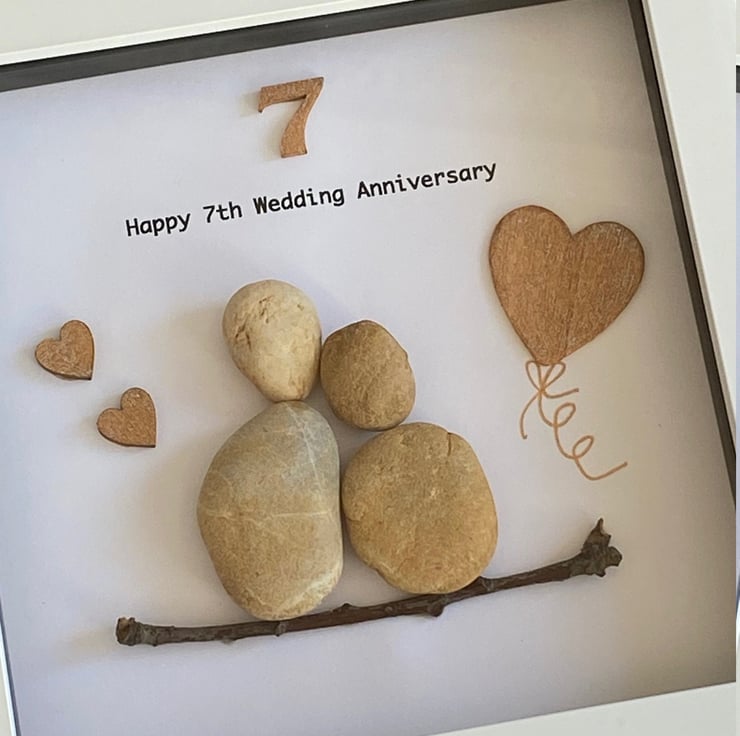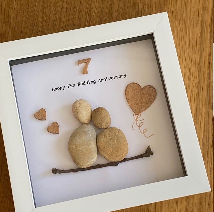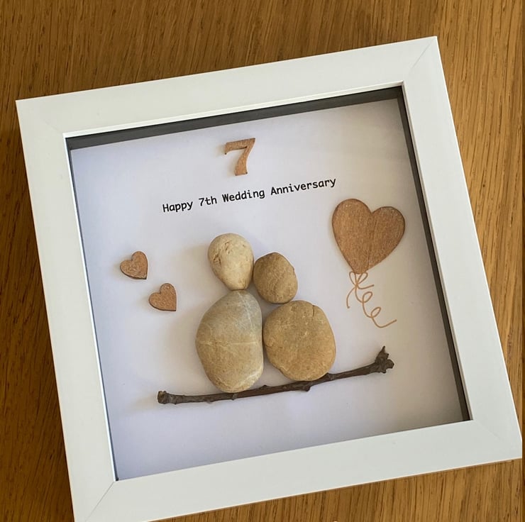 7th Anniversary Pebble Artwork Frame, Seventh Wedding Anniversary, Copper Annive