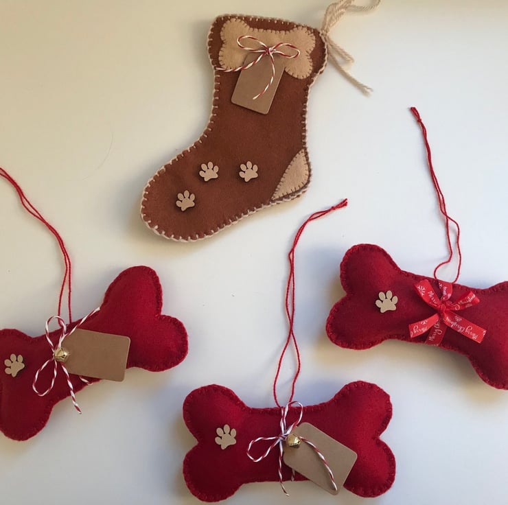 Handmade Felt Dog Decorations, Xmas Tree Puppy Decorations, Stocking Felt Decora