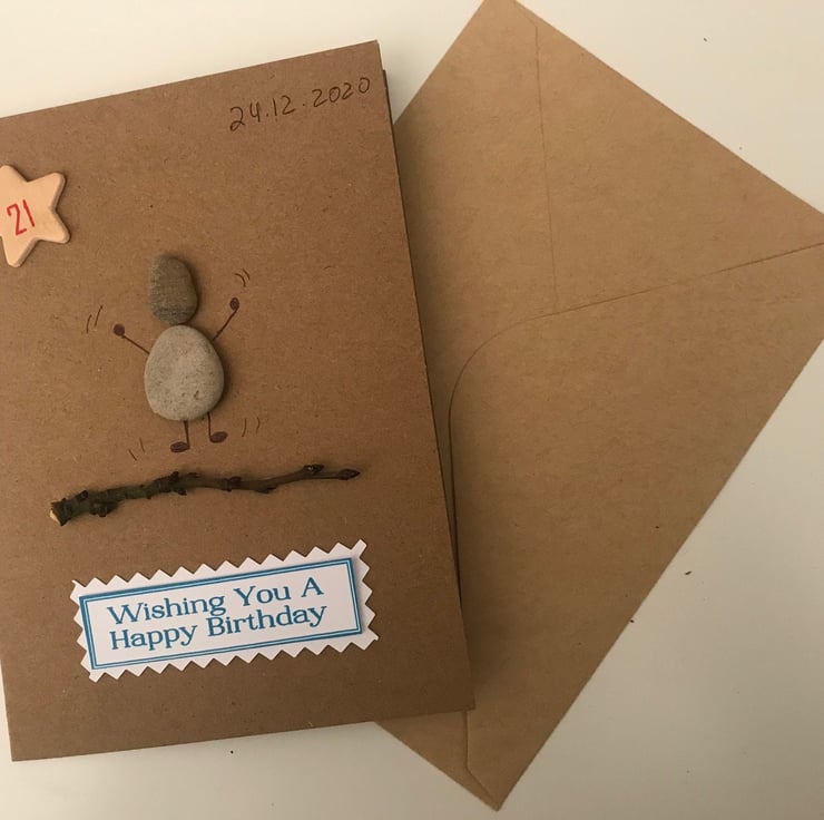 Happy Birthday Pebble Card, Personalised Birthday Card, Handmade Birthday Card,