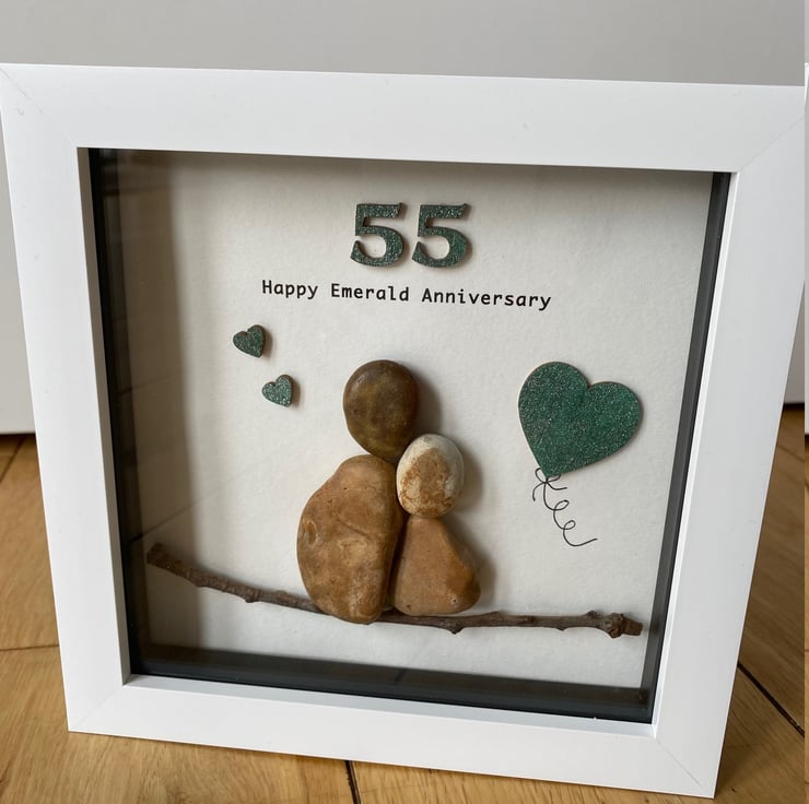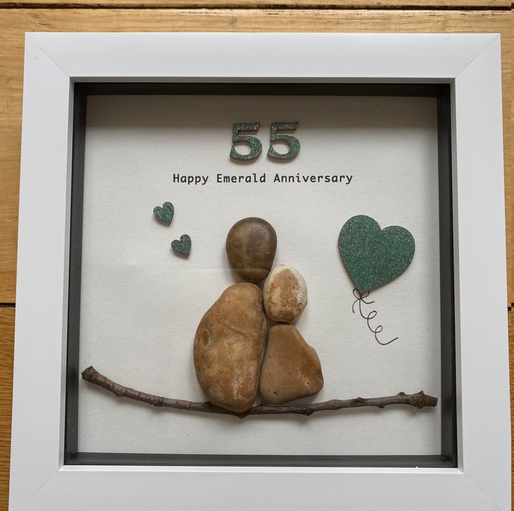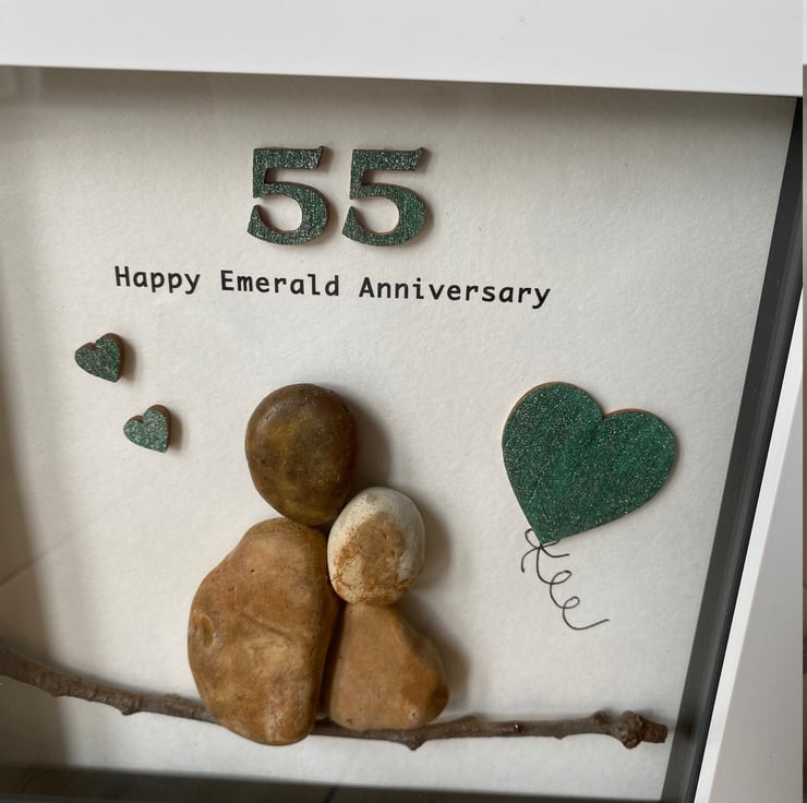 Made to order picture, 15x15 cm frame size, Emerald anniversary gift, 55th anniversary picture,Emerald wedding anniversary, Pebble art picture, Couple gift with emerald green effect heart, 55th anniversary present, Family 55th anniversary gift with emerald effect heart, Pebble art couple, Personalised gift, Unique gift, Family gift, Happy 55th anniversary, 55 years together, Emerald anniversary