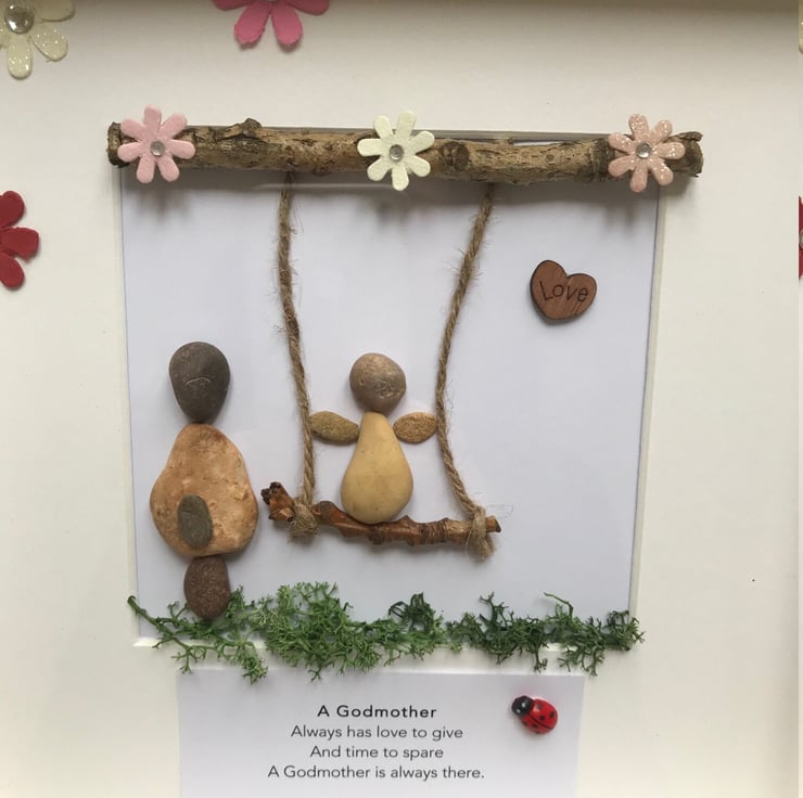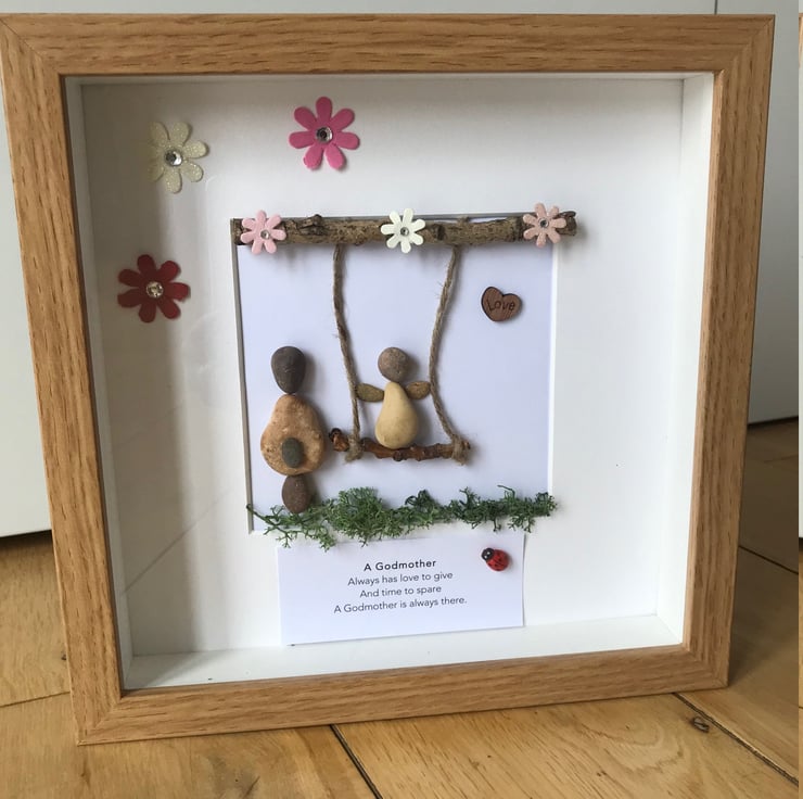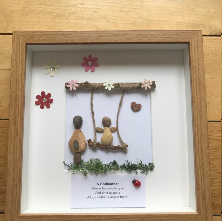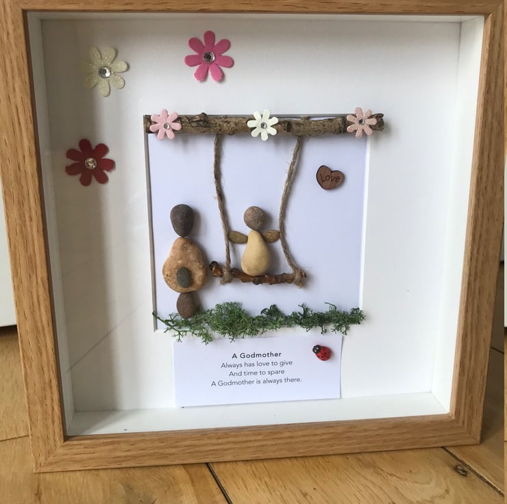 A beautiful handmade pebble frame to offer Godmother for Easter or any other occasion.