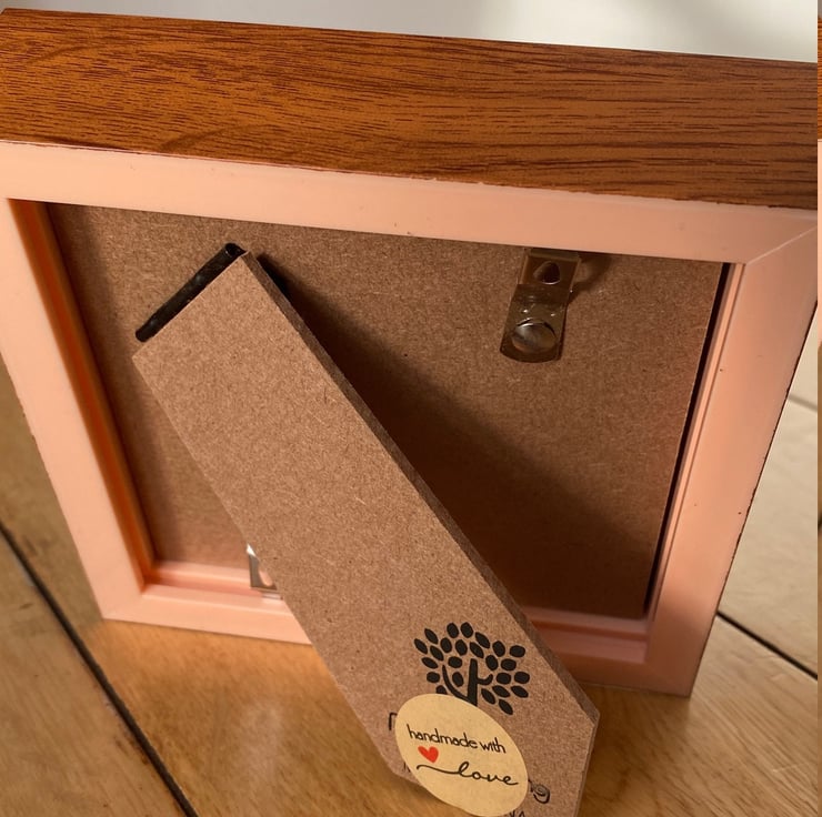 Frame measures 12.5cm x 12.5cm and comes with glass cover.