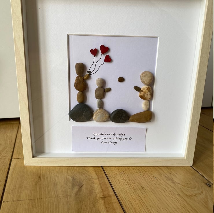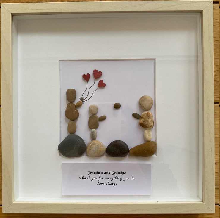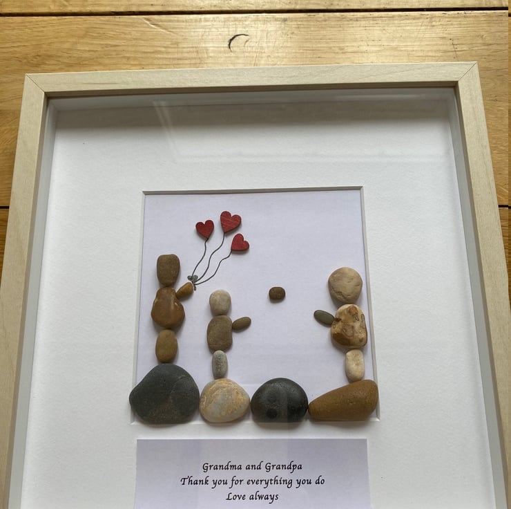 A beautiful handmade pebble artwork frame to give to grandma and grandpa so you can thank them for everything they do for you