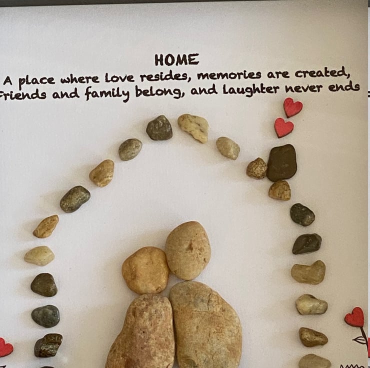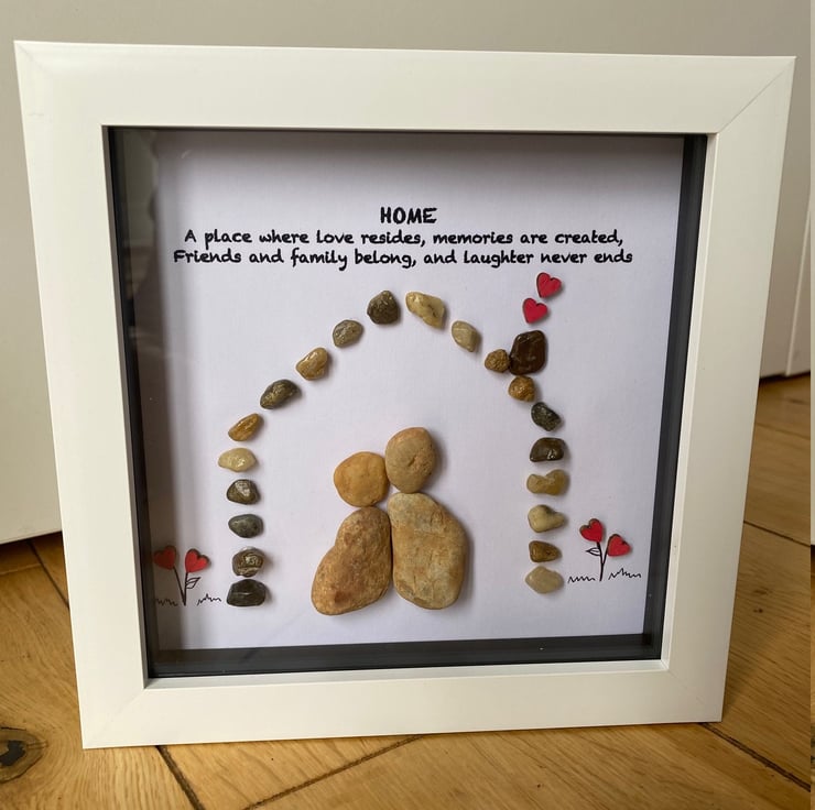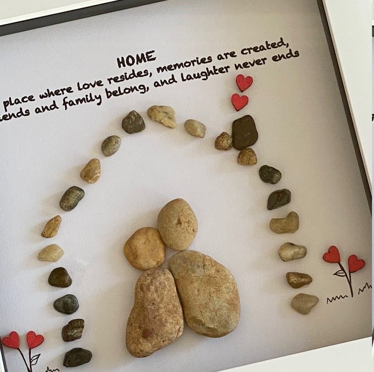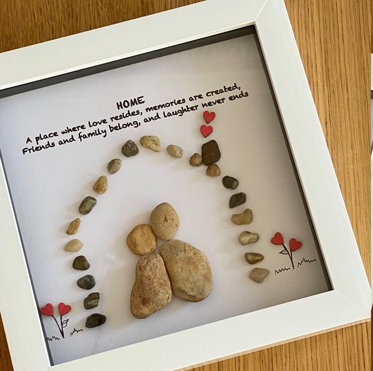 A beautiful handmade pebble frame to offer as a housewarming gift