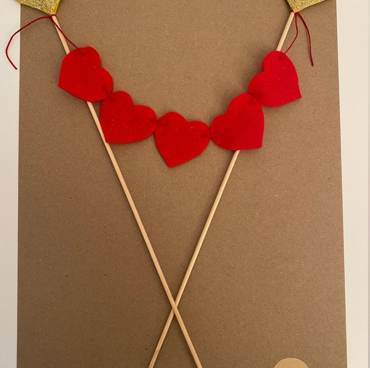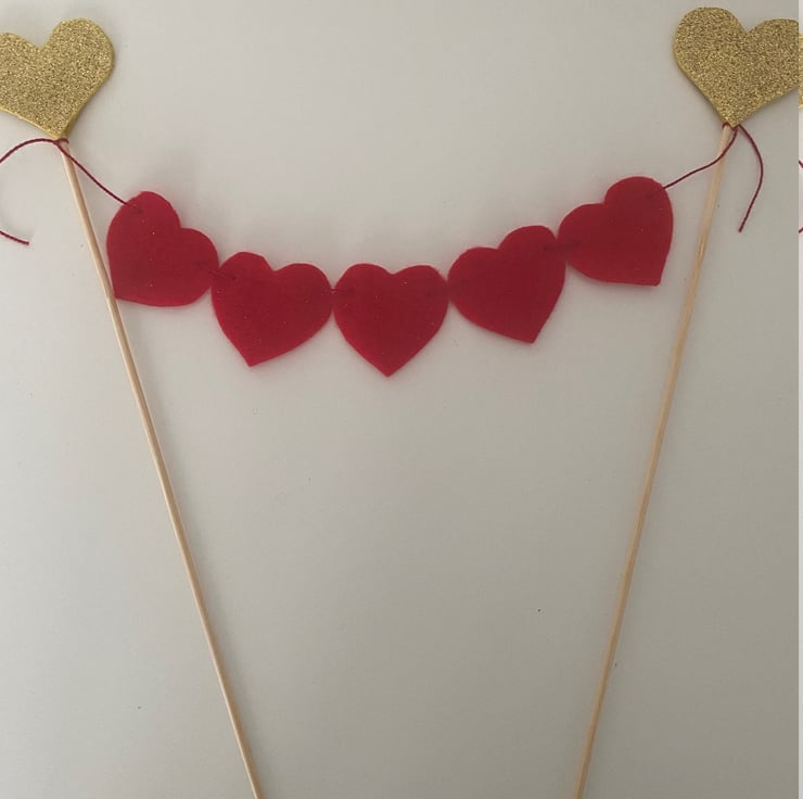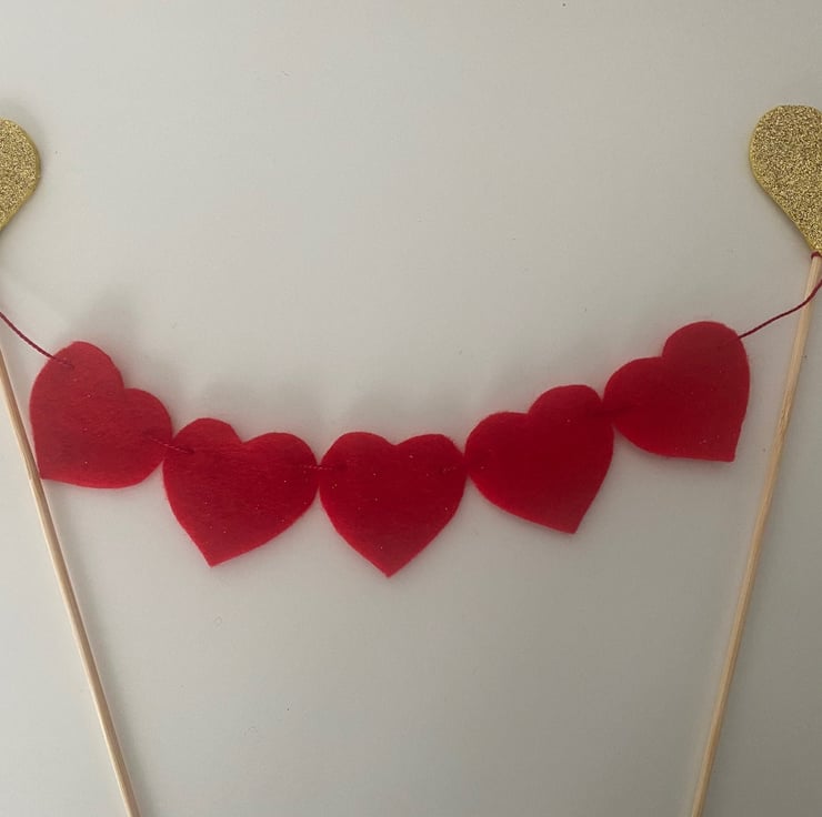 Handmade Felt Valentines Day Cake Bunting with Glittering Heart Motif
