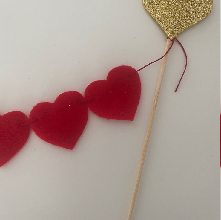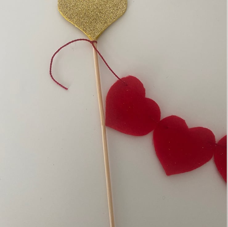 Comes with 2 Bamboo Sticks (Skewers), 5 mini felt hearts in red and 2 felt cut glittering hearts at the top of each stick.