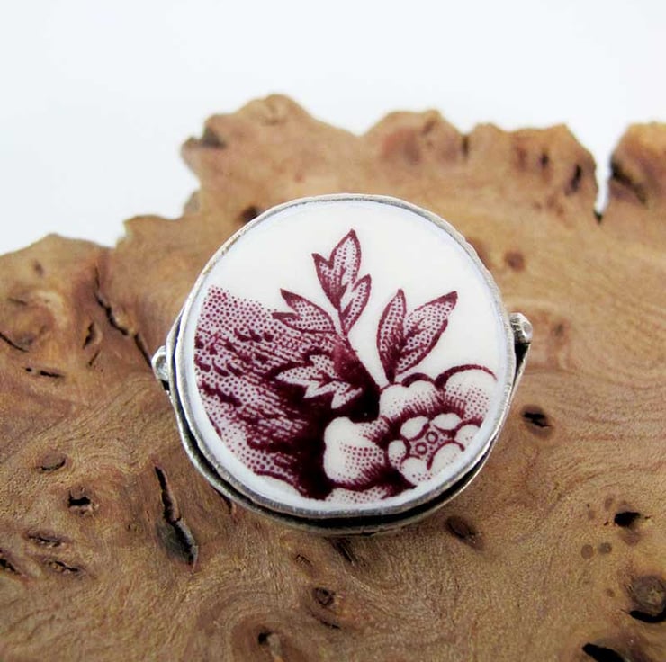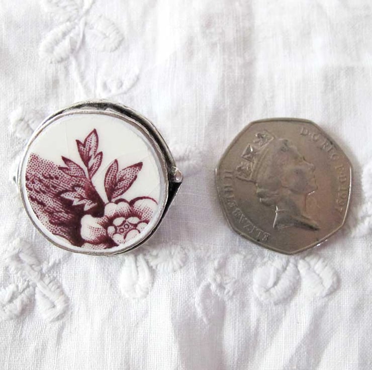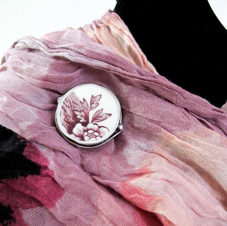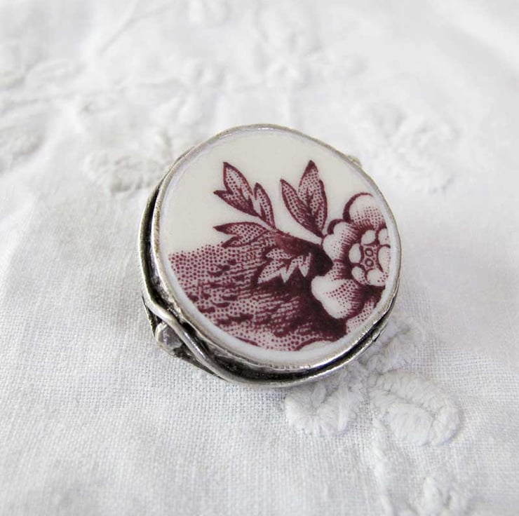 The brooch has been crafted from broken, chipped or crazed china that is no longer fit for purpose - no 'perfect' plates were harmed in the making of my jewellery! This piece is from a Mason's 'Ascot' plate in a beautiful shade of deep plum. Each brooch is a unique statement piece and has it's own little characteristics from the vintage china it's been taken from. It makes a very unusual and stylish gift.