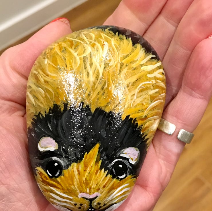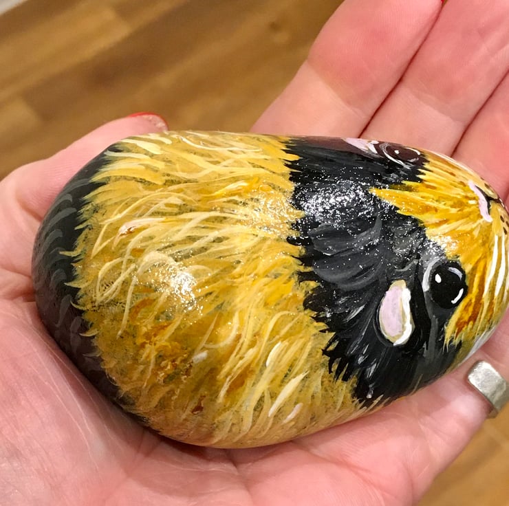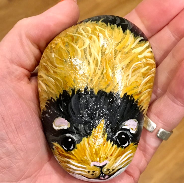 This guinea pig has been painted onto a smooth stone and