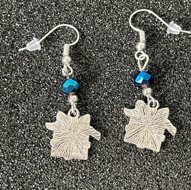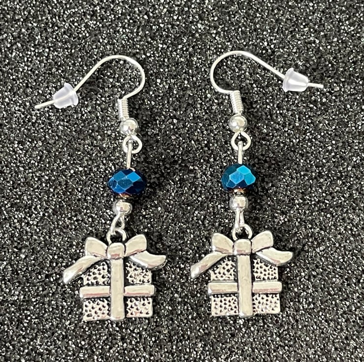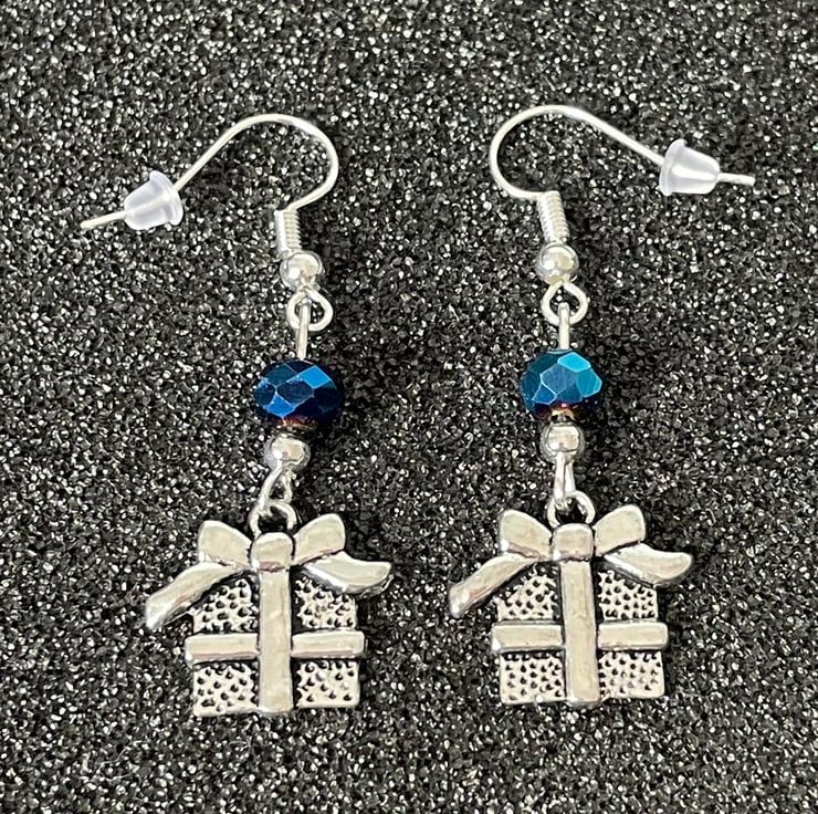 Handmade christmas present drop earrings with a blue acrylic bead on silver plated ear hooks. Drop 4cm (1.5").