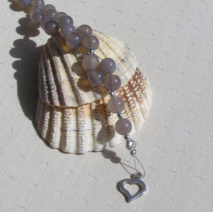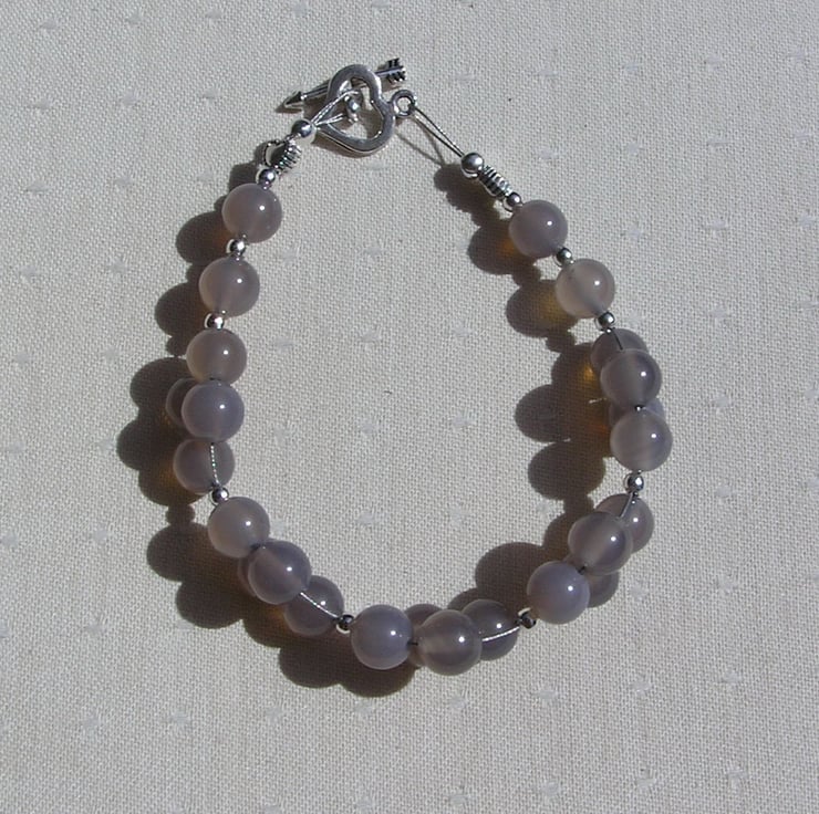 This Stunning Bracelet is made wholly from Grey Agate round beads clustered together in four's and for that added bit of sparkle tiny Silver spacer beads