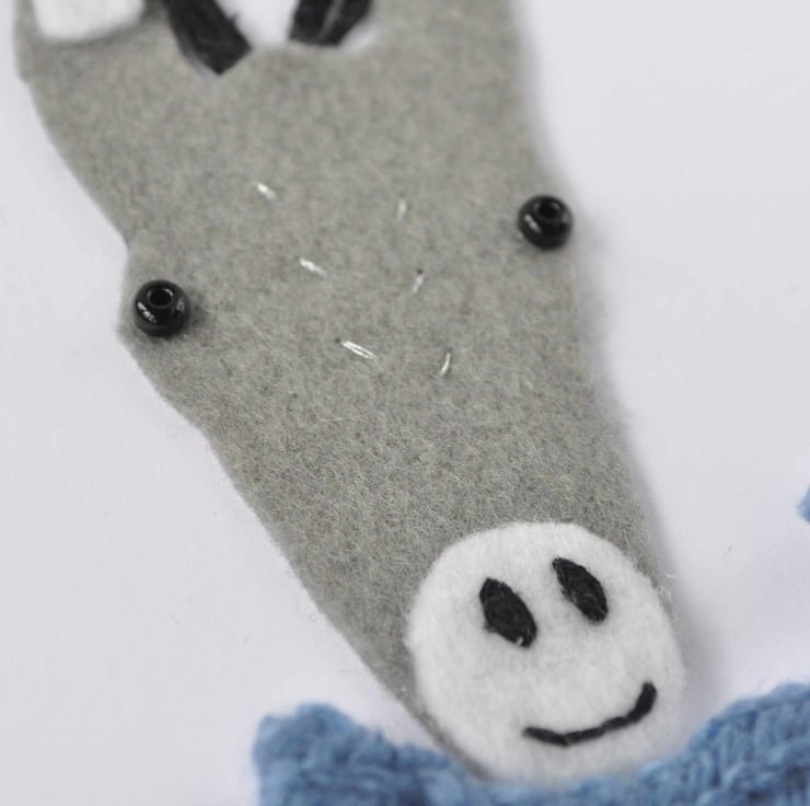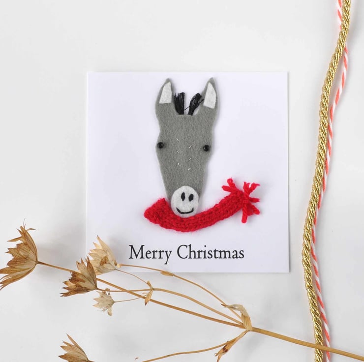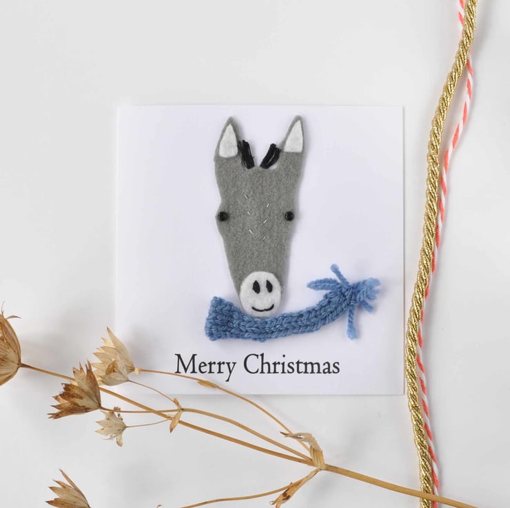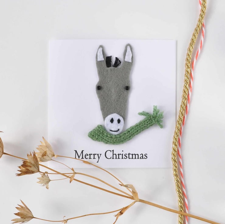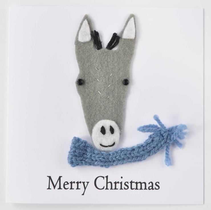 Rosie the donkey is a handmade Christmas card guaranteed to make everyone smile. Each donkey is made out of pieces of felt with some added embroidery stitches.