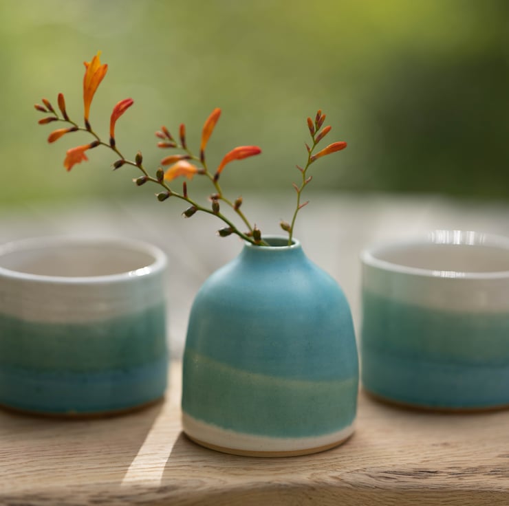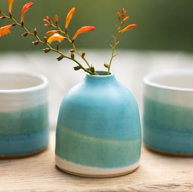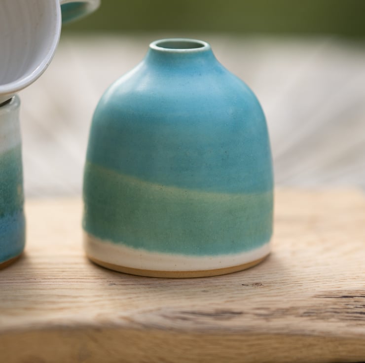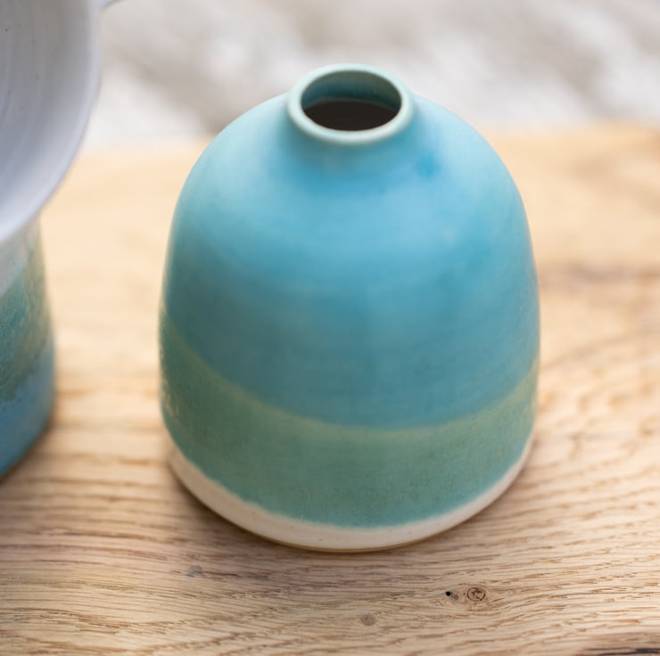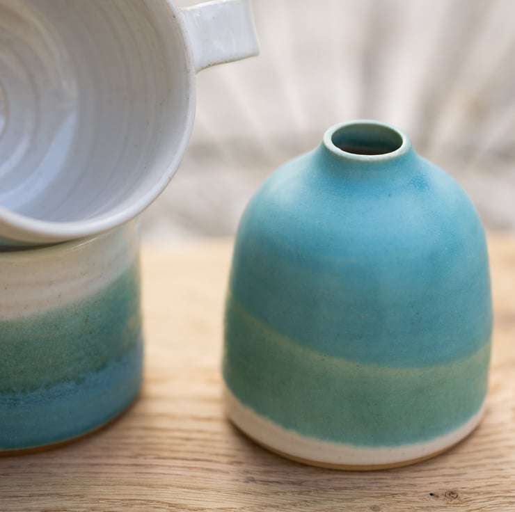 Thrown on the potters wheel in strong white stoneware, fired to 1250 degrees with a gorgeous copper patina turquoise glaze blending to white on the outer surface, vintage white glaze inside. Its so so smooth to the touch, I can't tell you how much!