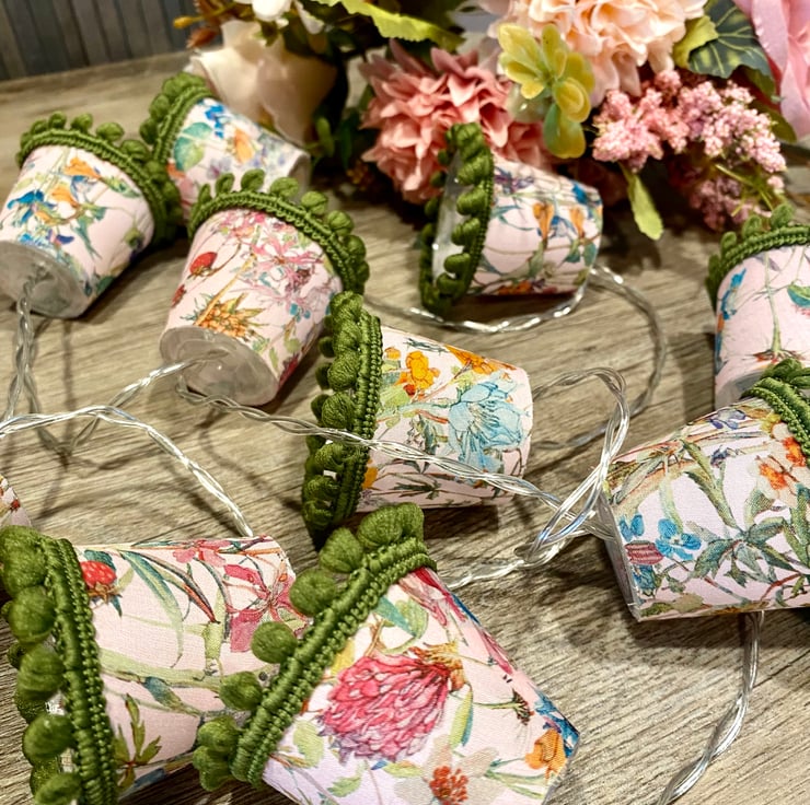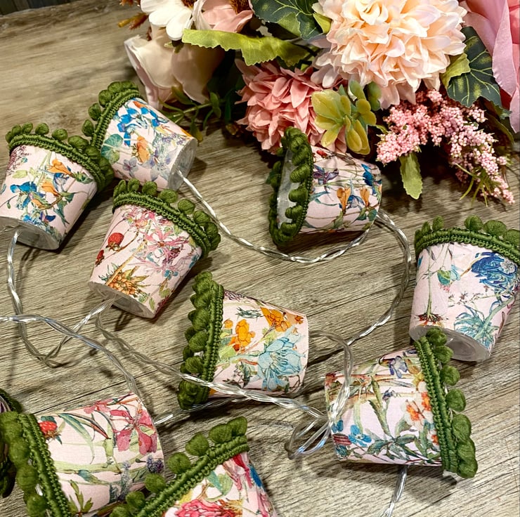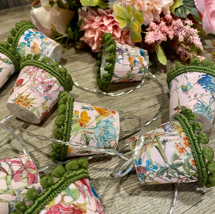 I also do custom lights to order, and I can even use your own special fabric, so please contact me if you would like a particular colour combination to fit with your decor, or have a specific fabric in mind. Just remember that these are mini lampshades, so the prints I use have to be mini too!