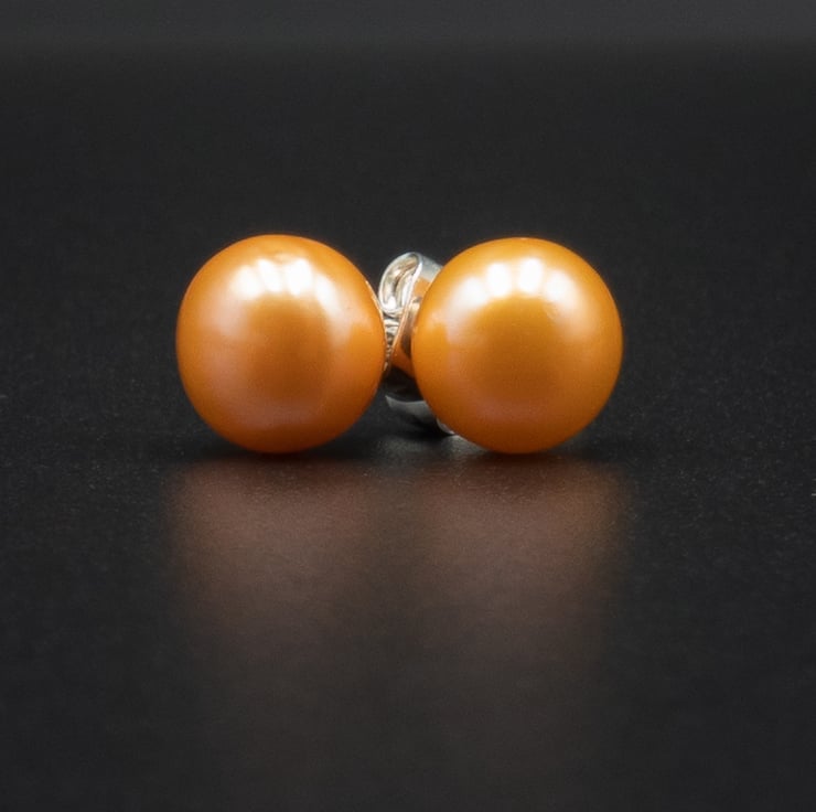 8mm peach pearls and silver plated stud earrings with a butterfly back to secure.