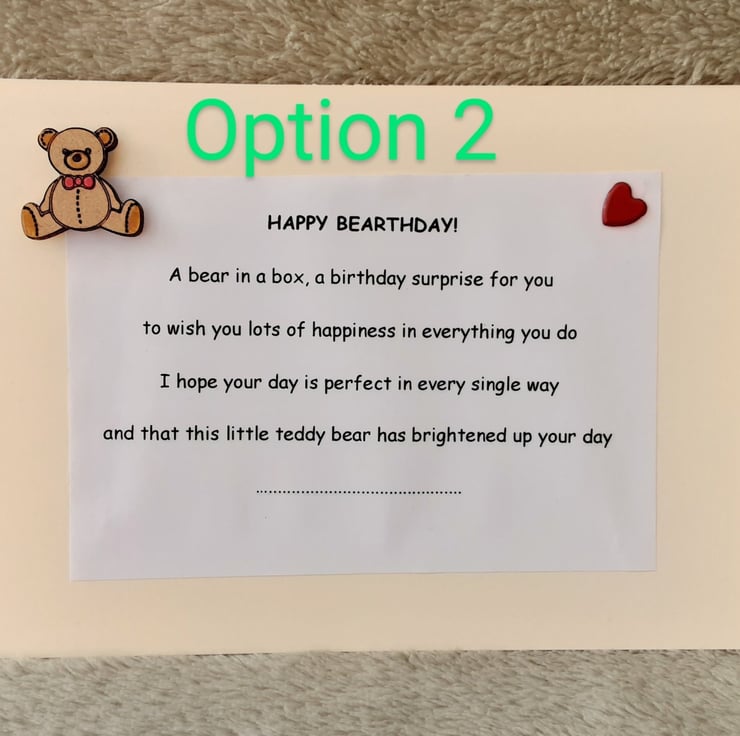 A hand made teddy bear card, left blank for your own use (I will add the message to this if you want me to send direct to a loved one)