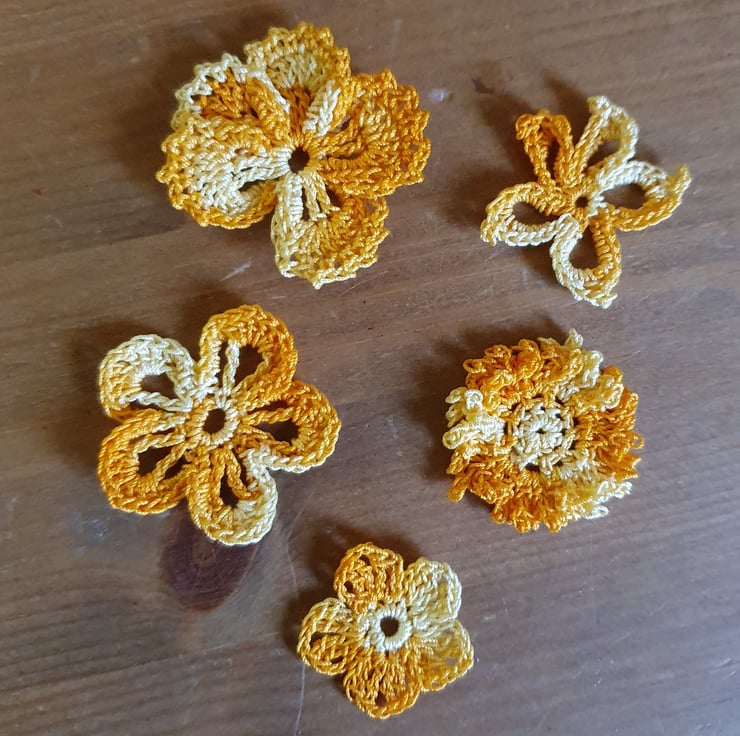 These beautiful little flowers and leaves are a great way to use up small quantities of thread that have been left over from larger projects.