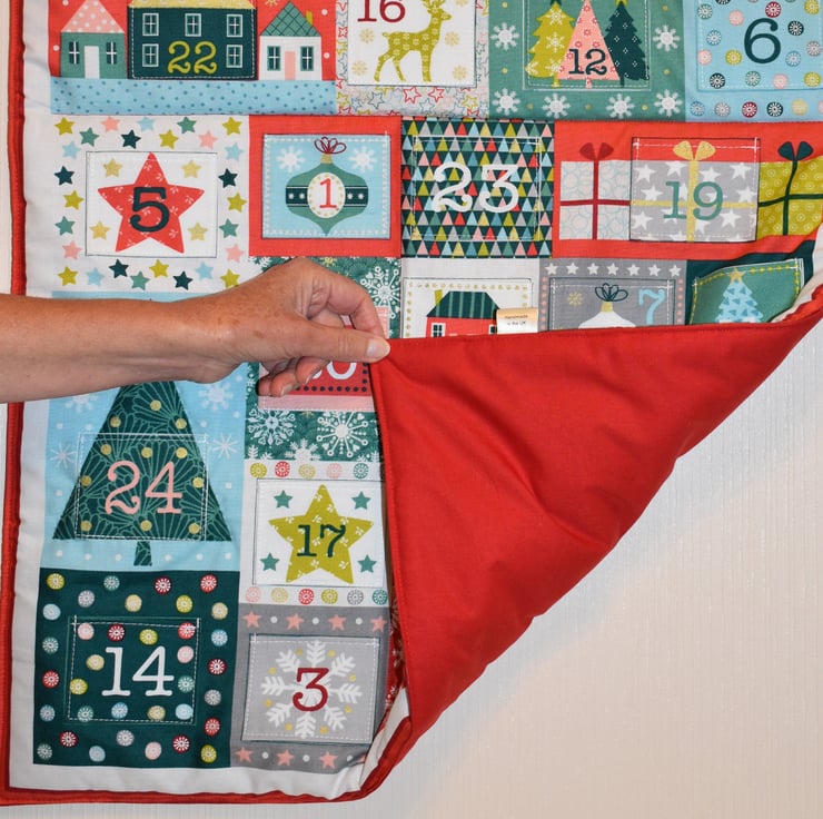 The calendars are made from 100% cotton fabric with polyester wadding in the centre. It is backed in Woodland backed in grey snowflake cotton fabric