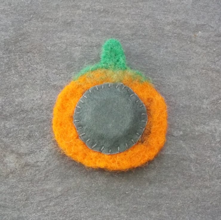 A little treat for Halloween that will last all year - a pumpkin shaped fridge magnet made from felt.