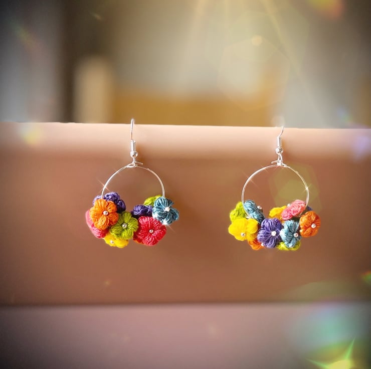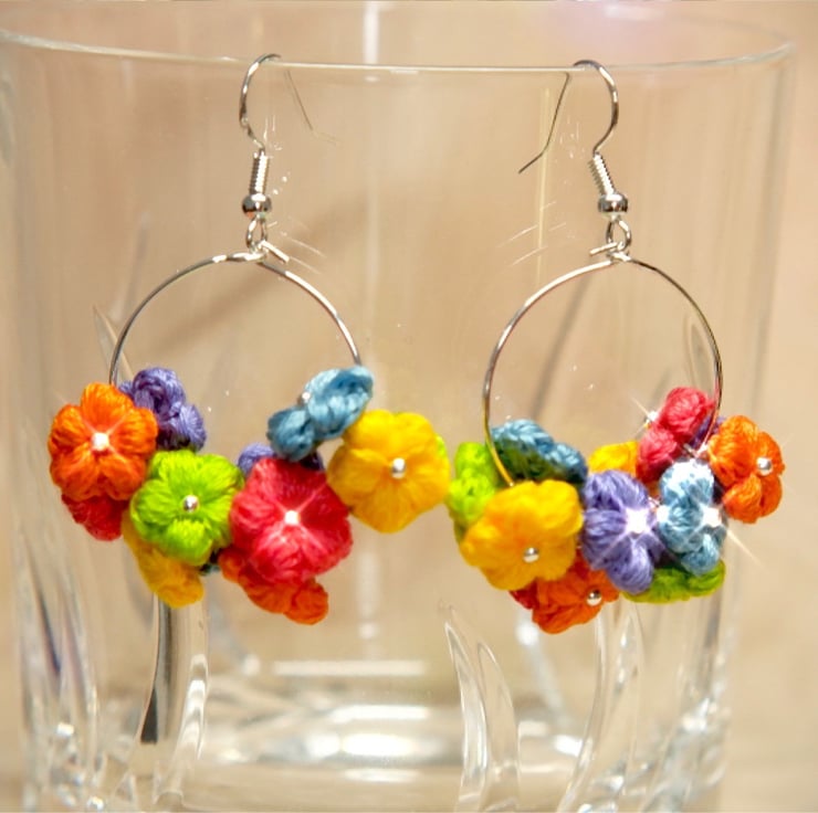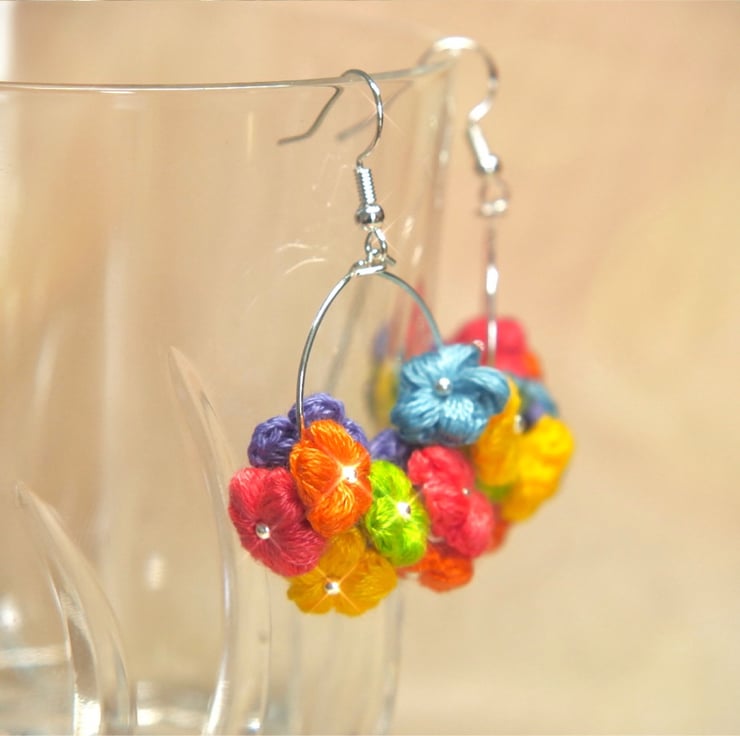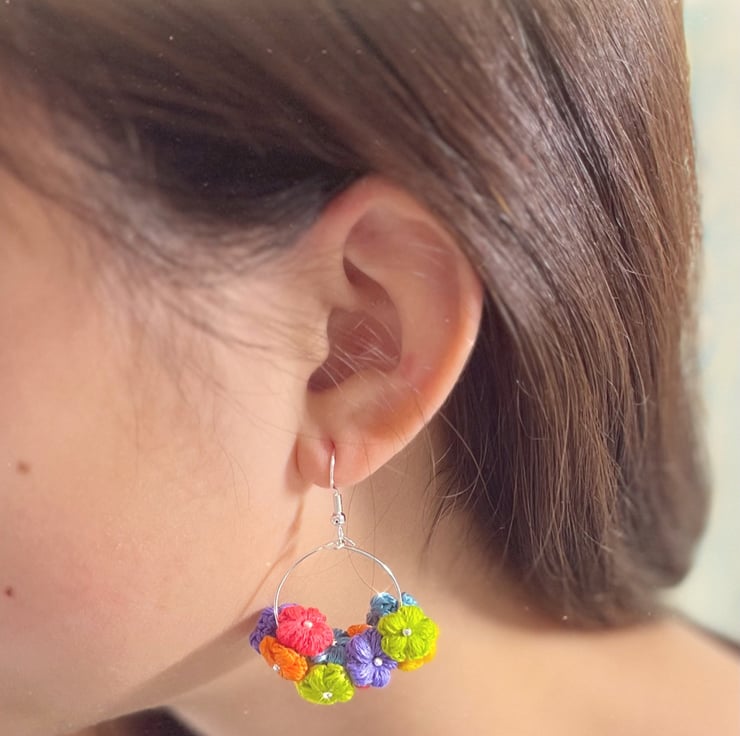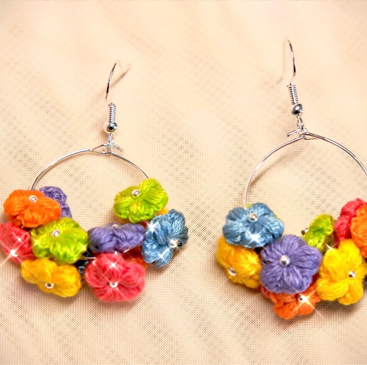 Microcrochet fall carnival earrings made with Embroidery Threads and Silver Earring hooks.