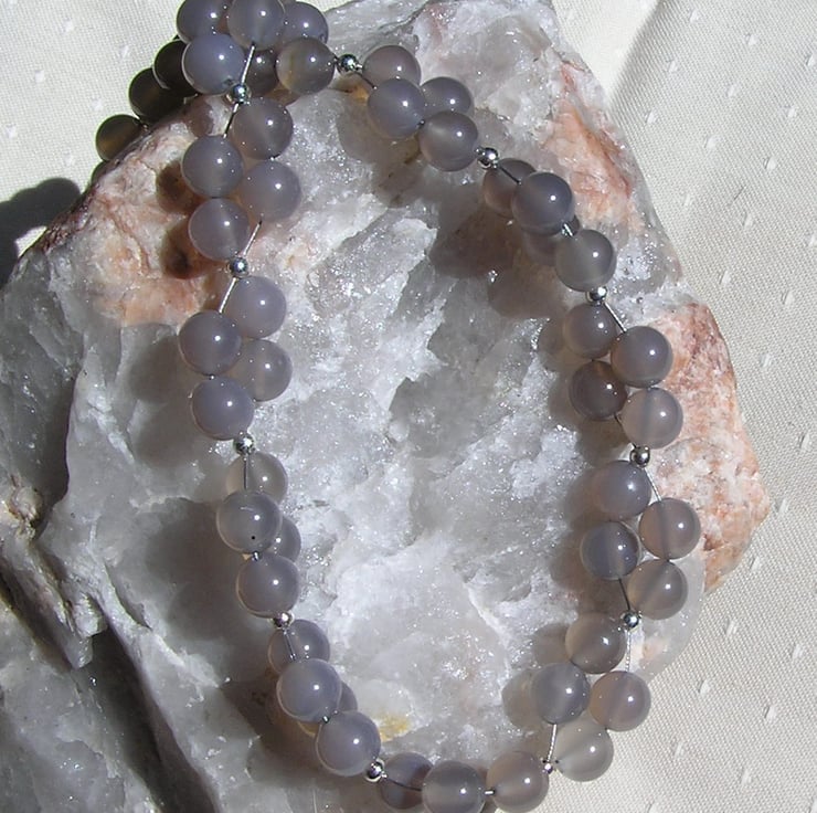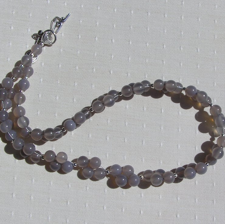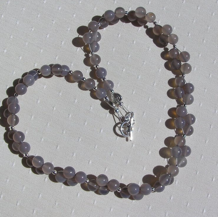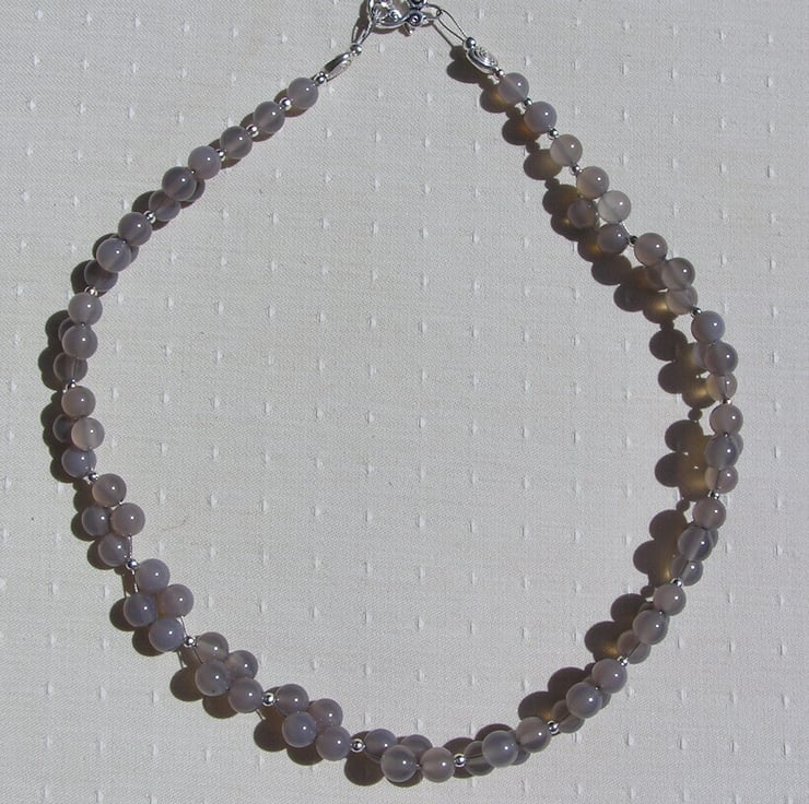 This Stunning Necklace is made wholly from Grey Agate round beads clustered together in four's and for that added bit of sparkle tiny Silver spacer beads - a Soothing combination that will look stunning either worn casually or with something more Elegant for a Special Evening out