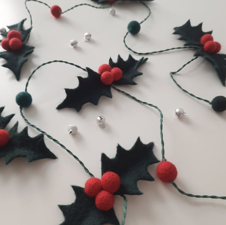 A soft, tactile translation of the traditional holly leaf, this garland is a one off piece for any Christmas enthusiast!