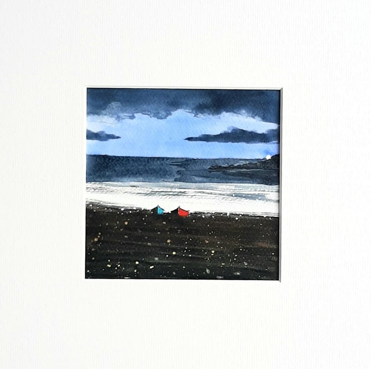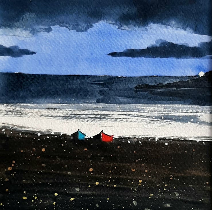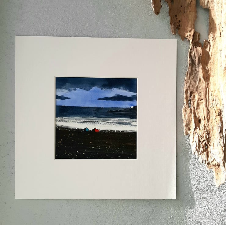 Beached, boats by the sea. An original watercolour Landscape Painting.