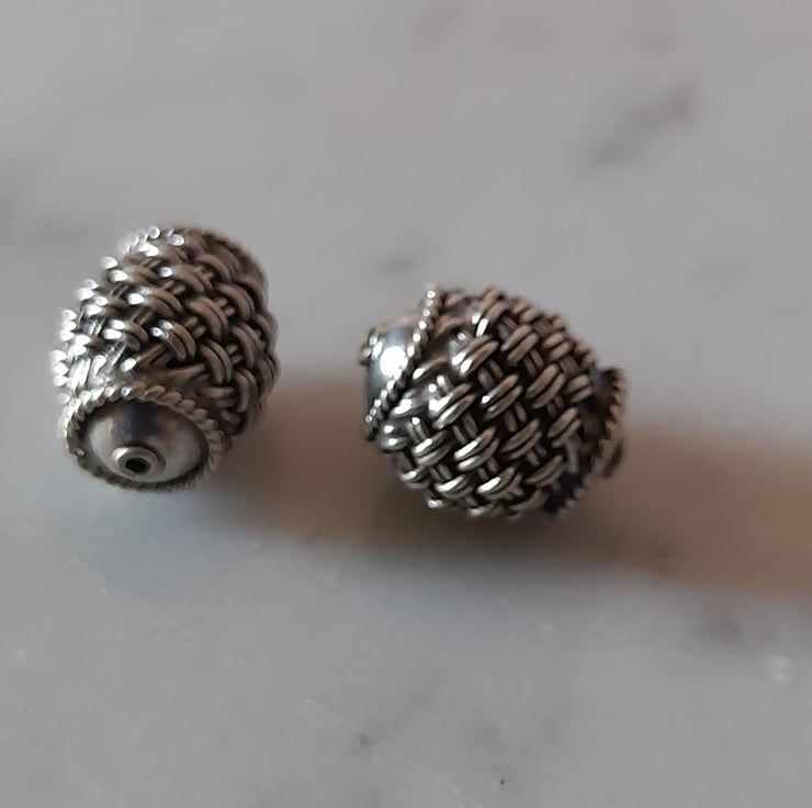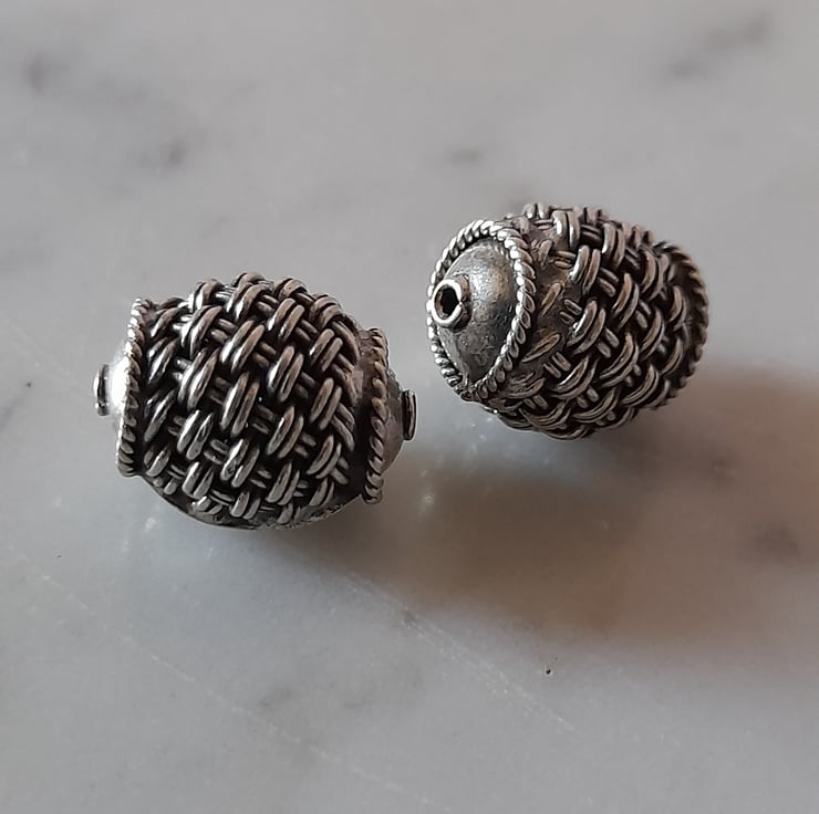 Bali  Sterling silver Beads - Barrel - Weave