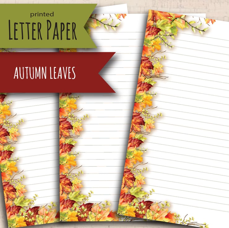A set of 10 sheets of A5 size handmade letter writing / notepaper set with a beautiful autumn leaves theme.