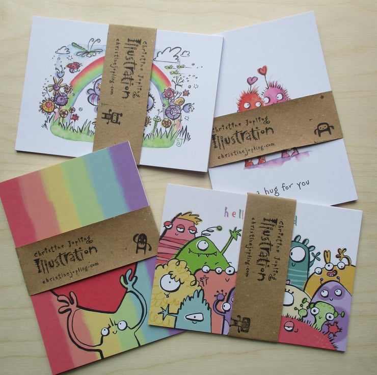 Please see my other postcard designs featuring a rainbow of colours and friendly designs.