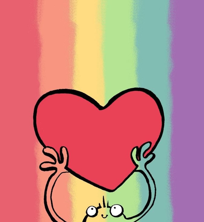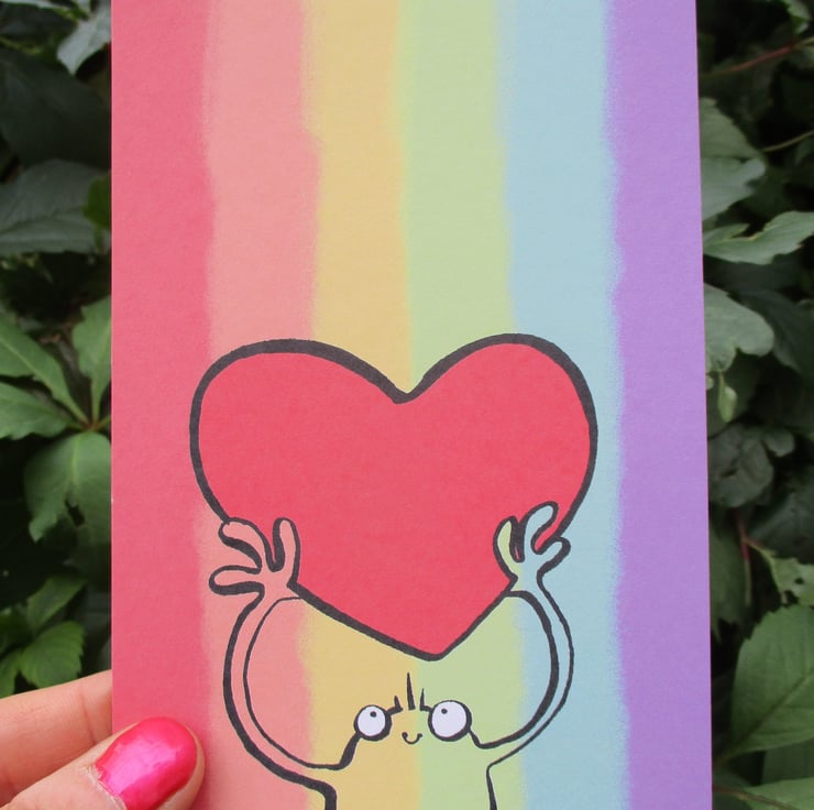 A6 “Rainbow and Heart” Postcard with cute monster and BIG heart