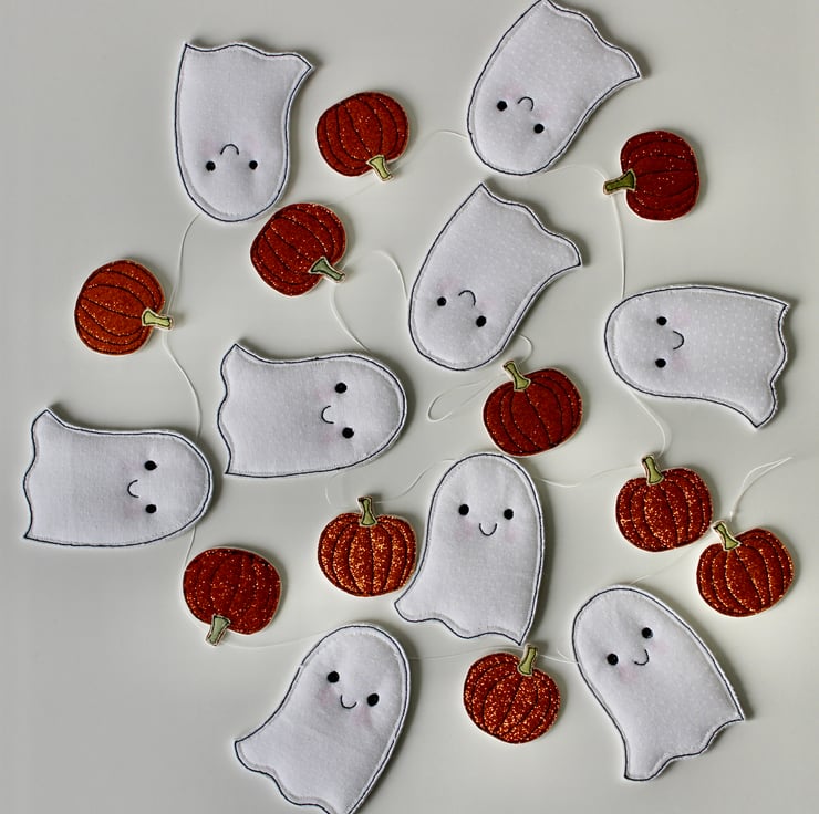 Measuring approximately 115cm in length and with the pumpkins measuring 3.5cm by 3.5cm and the ghosts measuring 7cm by 4.5cm.