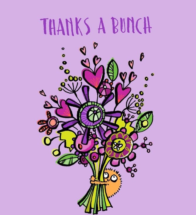 This postcard is also part of the Thank You Postcard Pack which includes 4 colourful postcards on a thank you theme and represents a wee bulk saving!