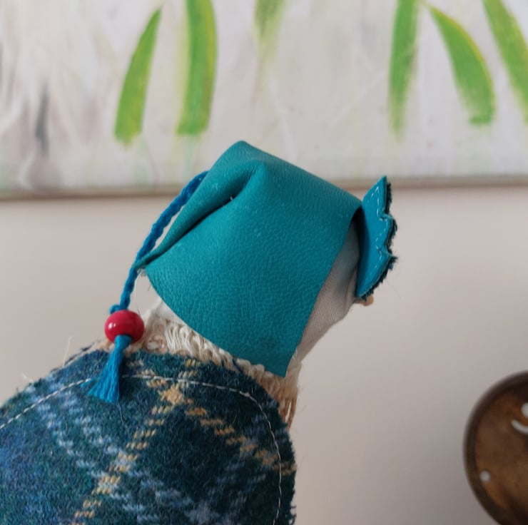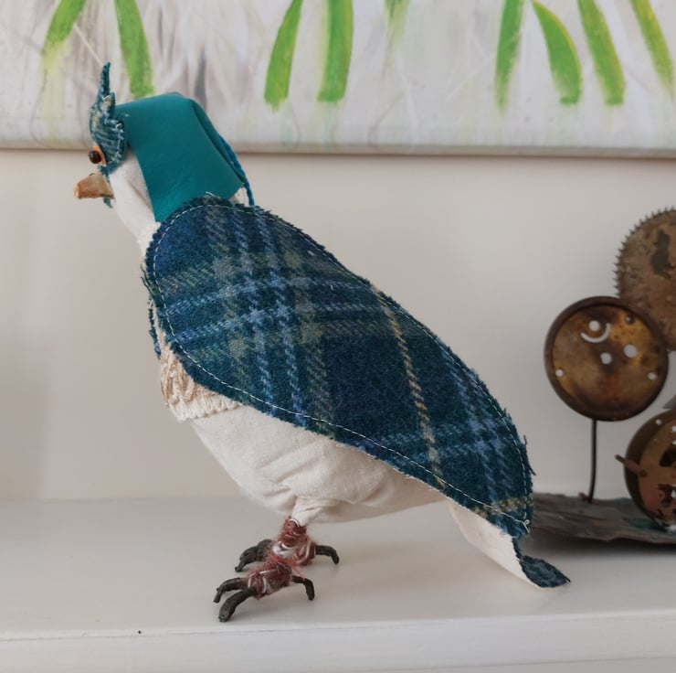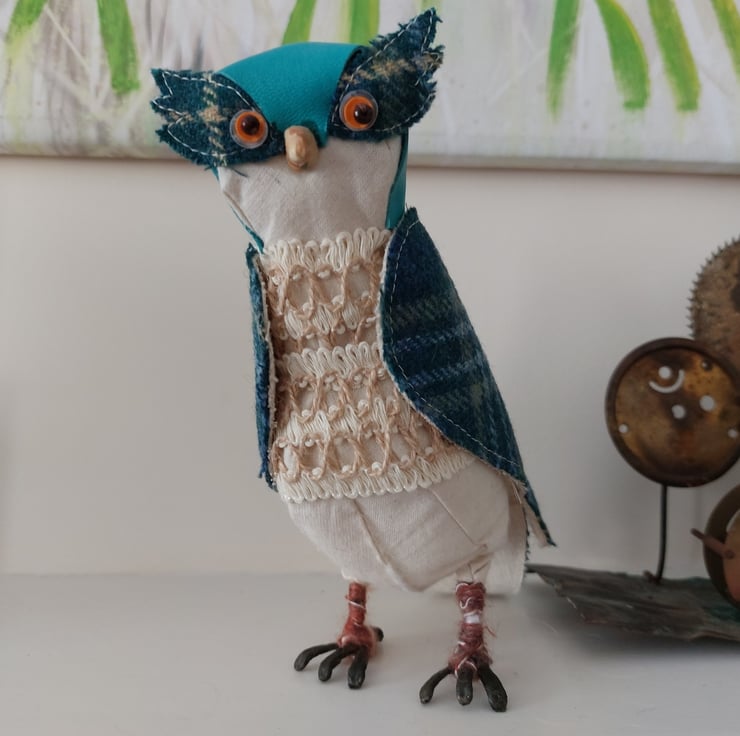 This quirky soft sculpture bird of prey is handmade from reclaimed fabrics. Height approx 20cm