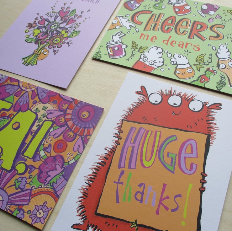 This postcard is also part of the Thank You Postcard Pack which includes 4 colourful postcards on a thank you theme and represents a wee bulk saving!
