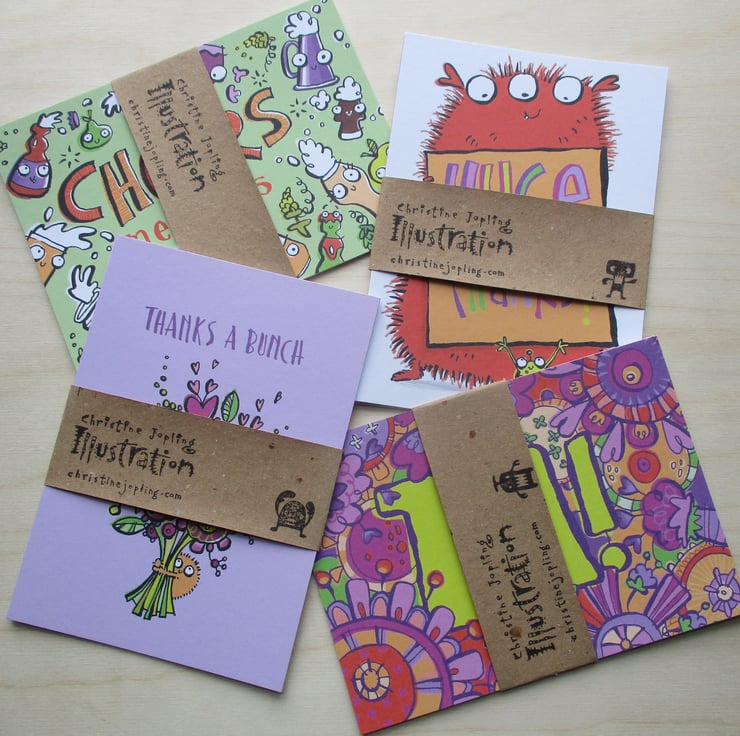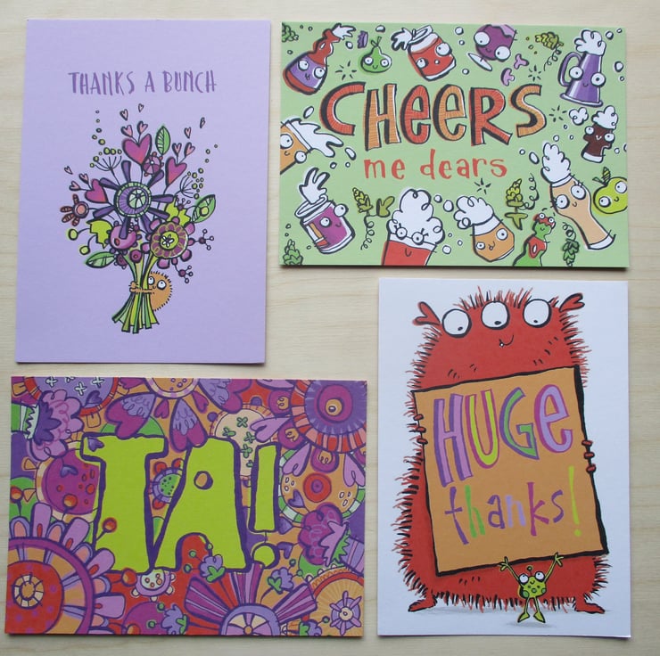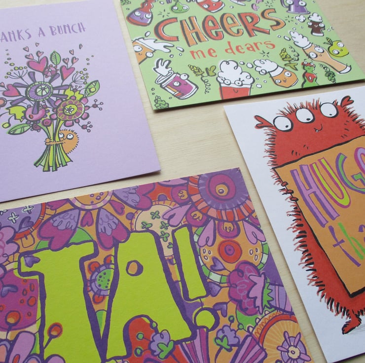 These A6 postcards are great for saying a big thank you in bright and cheery way. The hand drawn illustrations were a joy to create - I hope they make you smile too!
