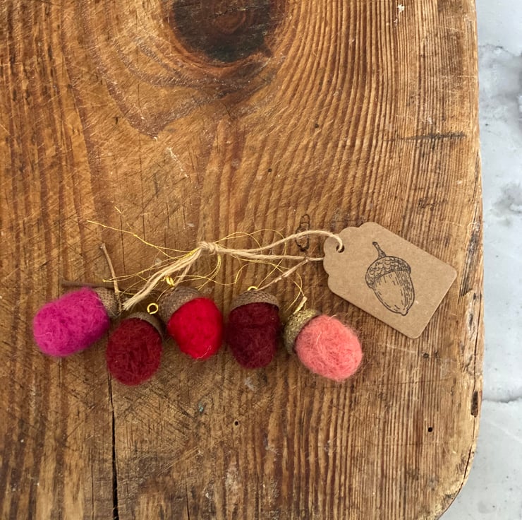 Made with sustainably sourced wool, foraged acorn cups and a delicate golden thread for hanging up with.