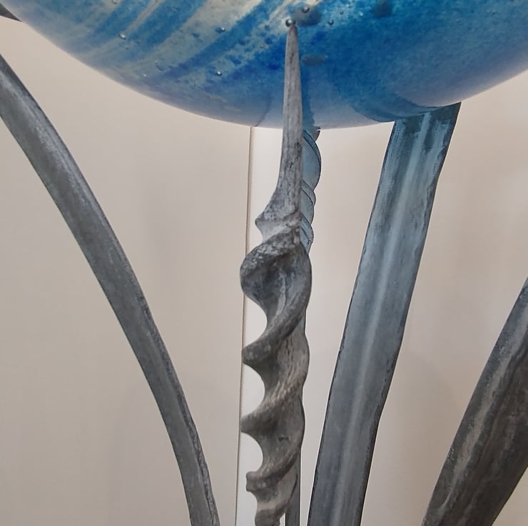 I love natural forms and playing with metal to try and represent their flow and form. In addition I love colour so bringing them together in this way is a delight to me with the bowl representing the water.
