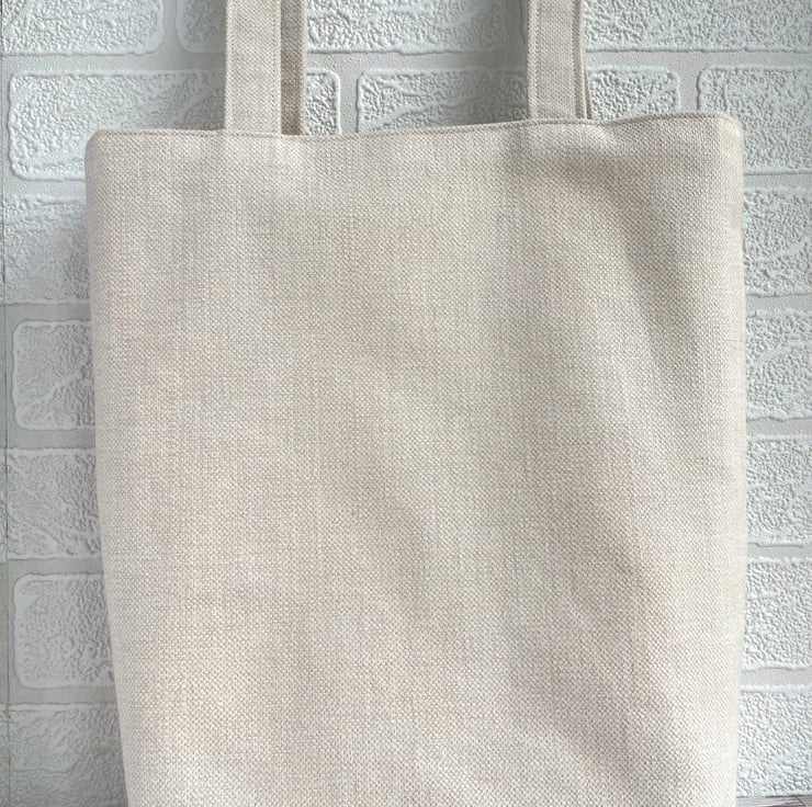 The measurements of the tote bag are approx. 14 inches (35cm) high x 12.5 inches (32cm) wide x 3 inches (8cm) across the base. The handles are approx. 24 inches (60cm) from end to end, and are of a length that can be worn on the shoulder or carried as a handbag.