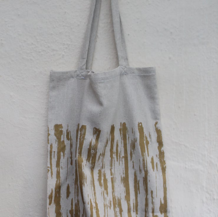 This bag is printed with a gold abstract pattern, which has been screen printed from my own unique design.