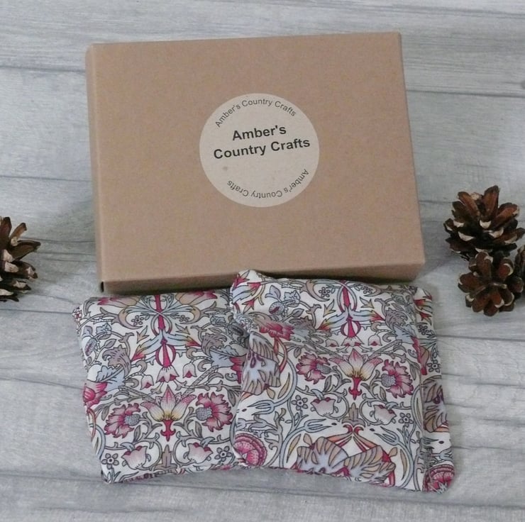 Sold as a pair, each one is generously filled with wheat and measures 10 cm square.