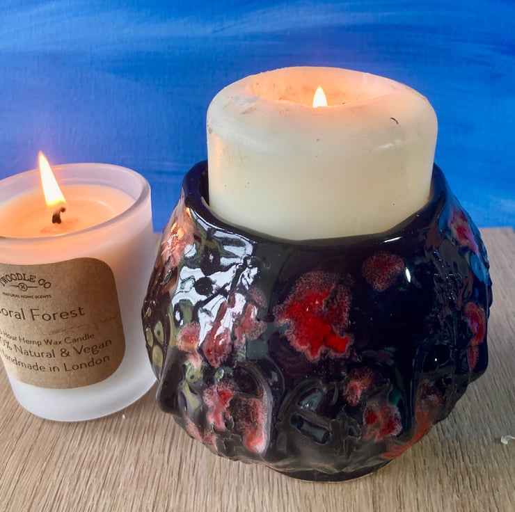It can be used practically to hold a candle, pot-pourri or trinkets but should not be used for food due to the crackle nature of the glaze.