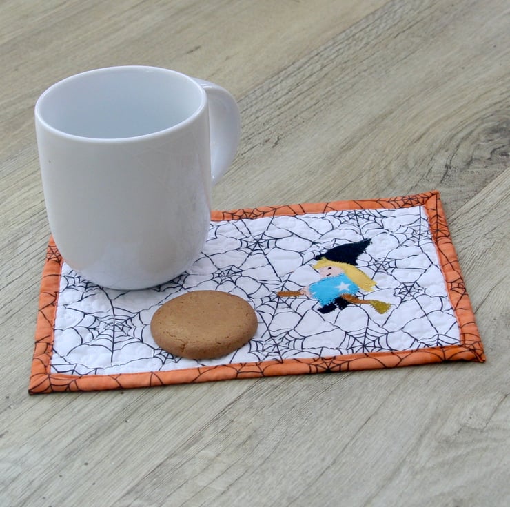 This spooky mug rug, with a Witch riding her Broomstick on the right hand side, is big enough to accommodate your drink and a cheeky biscuit.