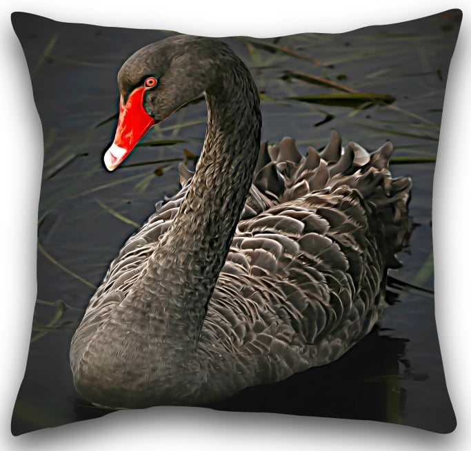Black Swan Cushion Black Swan Pillow, Cushion Cover, Pillowcase, Choose Your Size & Reverse Colour, Handmade to order with a zip for cover removal. Our Cushion Covers are designed and Printed by us Aggie’s Bags, our covers are overlocked to give it strength and structure.