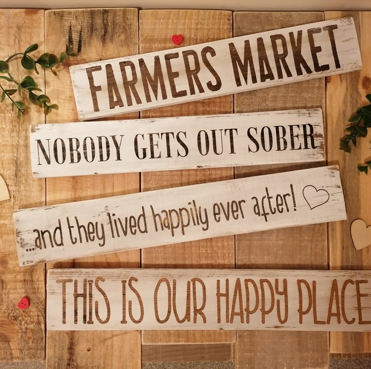 These rustic wooden signs have been handmade using reclaimed wood which has been finished in a distressed look, white chalk paint giving it that weathered rustic feel which is a popular trend right now.