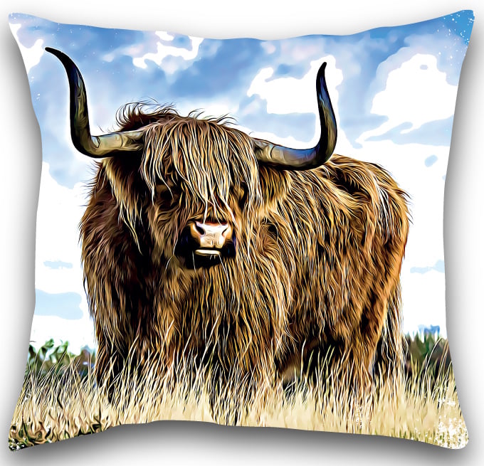 Highland Cow Cushion Highland Cow Pillow, Cushion Cover, Pillowcase, Choose Your Size & Reverse Colour, Handmade to order with a zip for cover removal. Our Cushion Covers are designed and Printed by us Aggie’s Bags, our covers are overlocked to give it strength and structure.